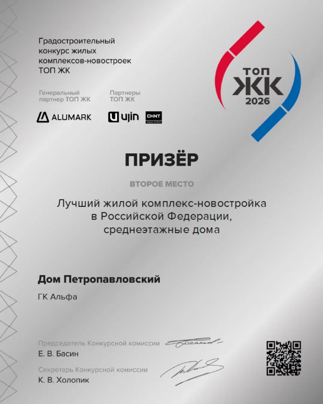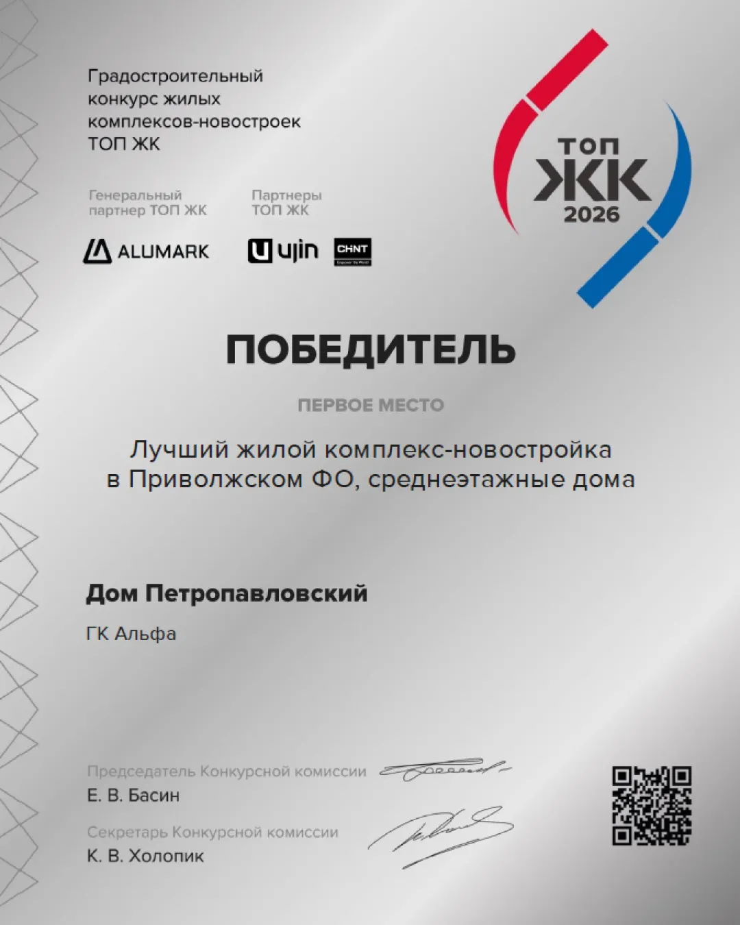 Дом Петропавловский отмечен наградой премии ТОП ЖК-2026Клубный дом "Петропавловский" на ул. Н.Островского, 1 занял призовые места в премии ТОП ЖК-2026.