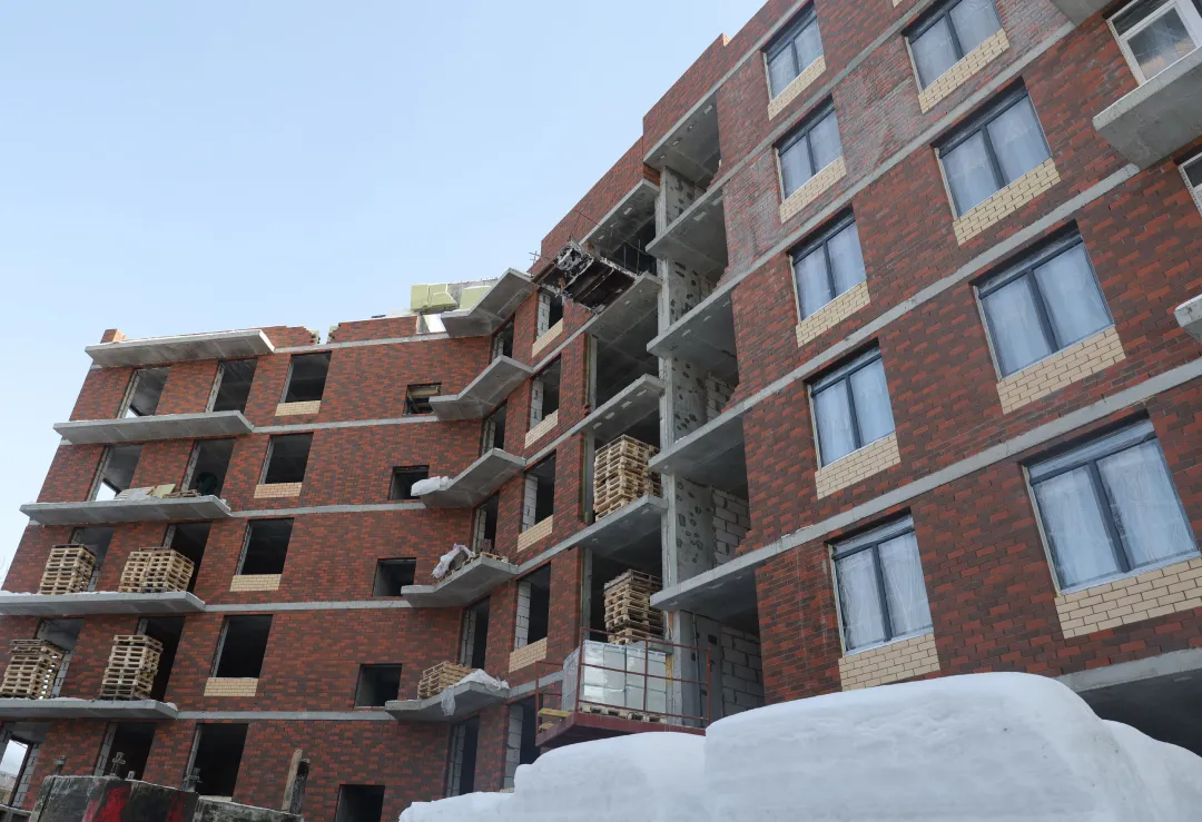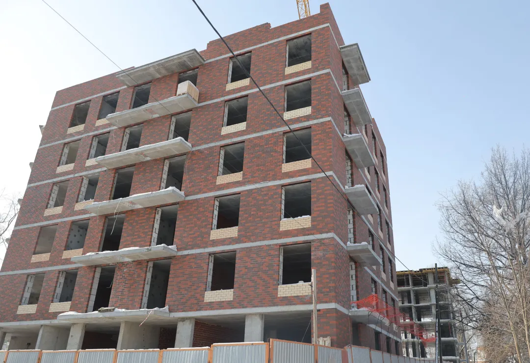 🔸Кладка наружных и внутренних стен 6 этажа - 80%