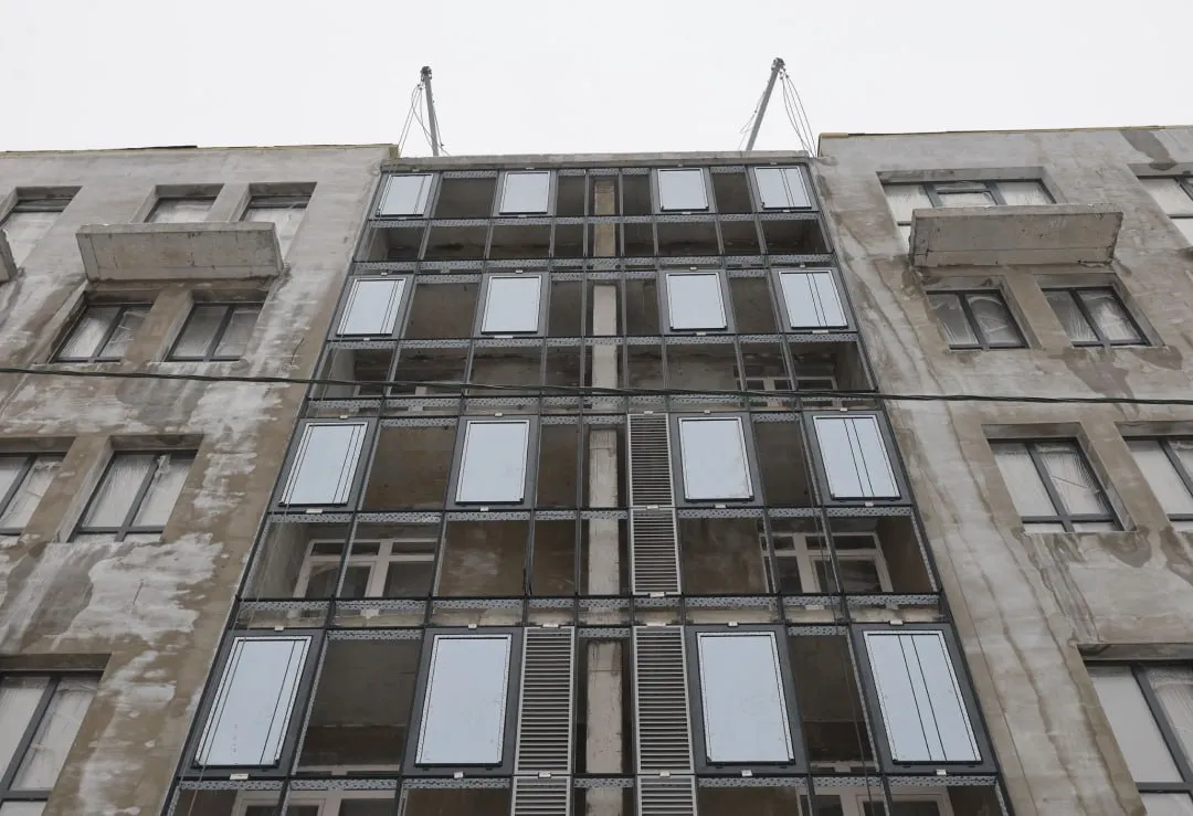 монтаж витражных конструкций балконов 2-6 этаж - 25%