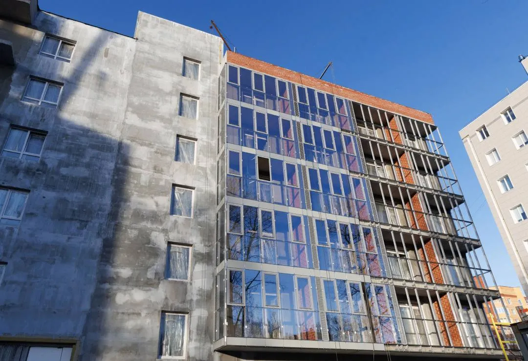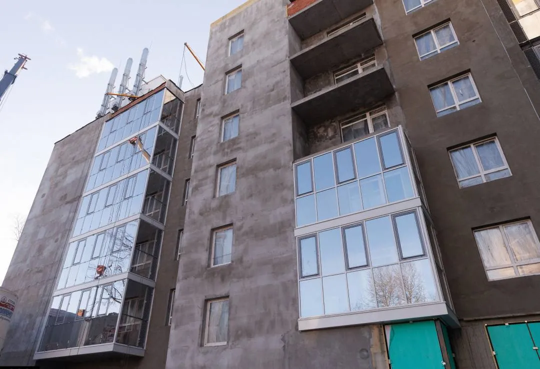 монтаж витражных конструкций балконов 2-6 этаж - 80%