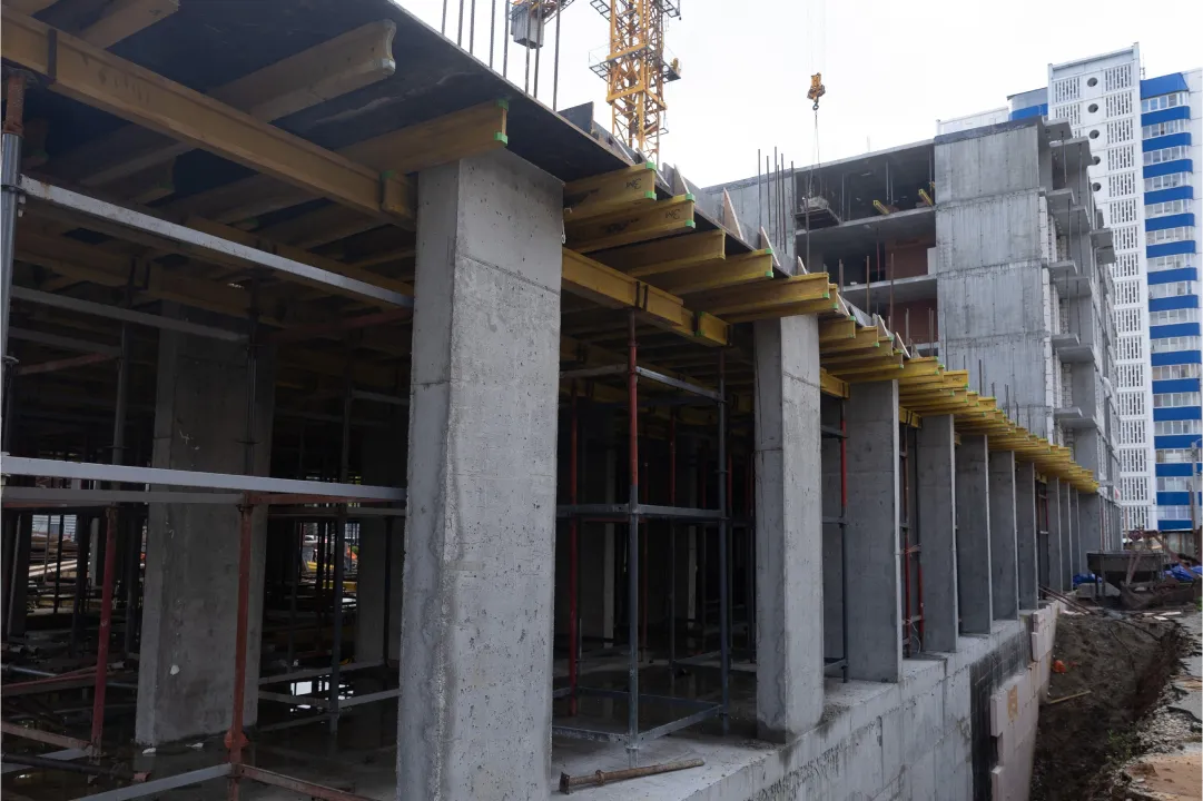 - устройство вертикальных железобетонных конструкций 1 этажа - 100%
