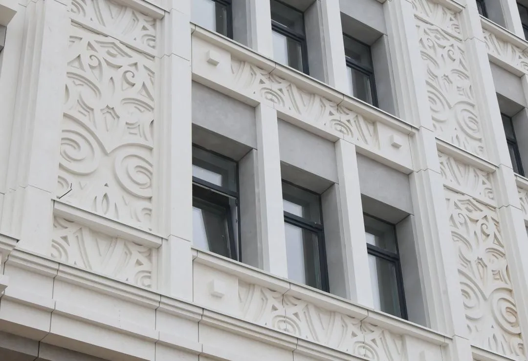 ▪️Устройство декоративного фасада в осях П/1-13 - 85%